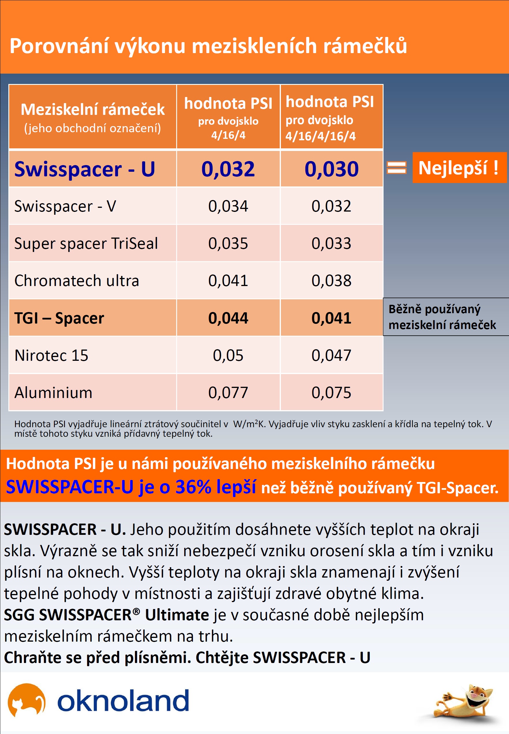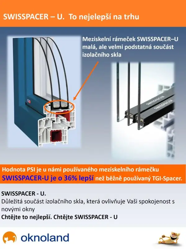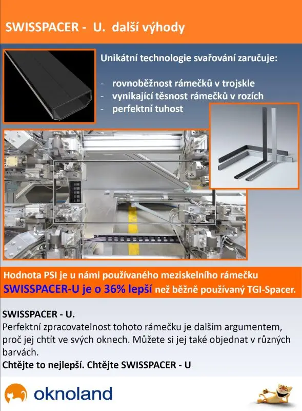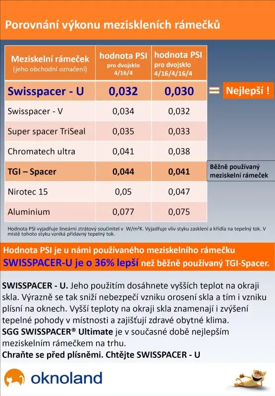 Ten je však v porovnání s námi standardně nabízeným SWISSPACER – U o poznání horší. Meziskelní rámeček SWISSPACER – U má o cca 36% lepší hodnotu PSI oproti zmiňovanému TGI spacer.
