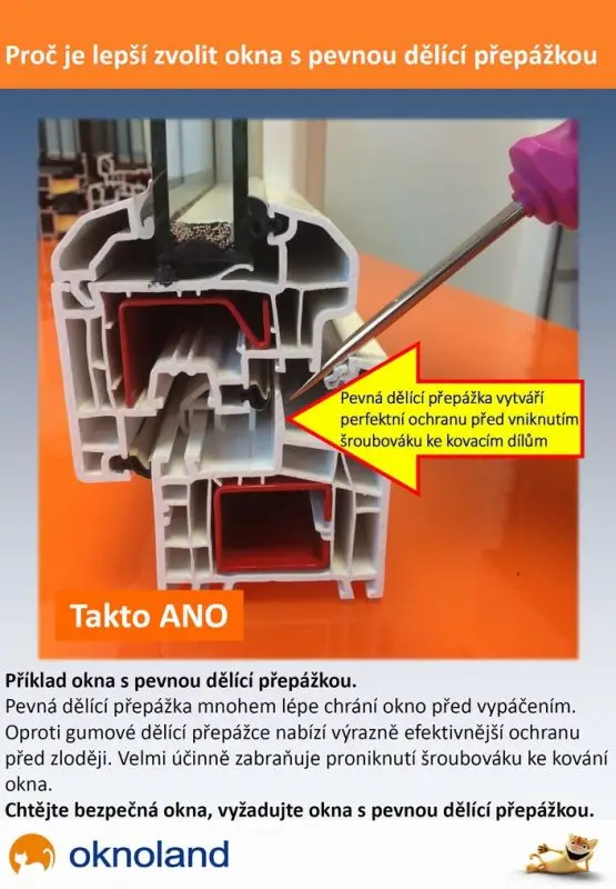 Pevná dělící přepážka významným způsobem ovlivňuje bezpečnost plastového okna.