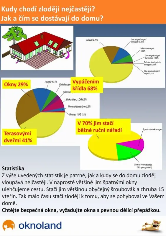 Zloději používají většinou tu nejsnadnější cestu jak se dostat do vašeho domu. V drtivé většině tak využívají plastová okna a terasové dveře. Stačí jim většinou malé ruční nářadí – nejčastěji šroubovák. Nevhodná konstrukce okna jim velmi usnadňuje cestu.